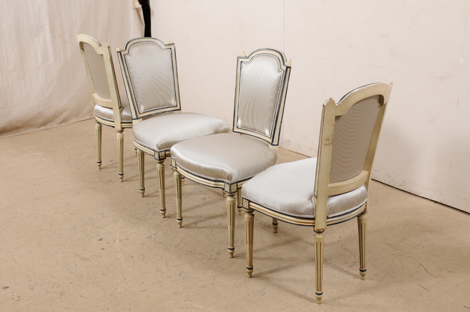 French Set of 4 Carved & Upholstered Chairs