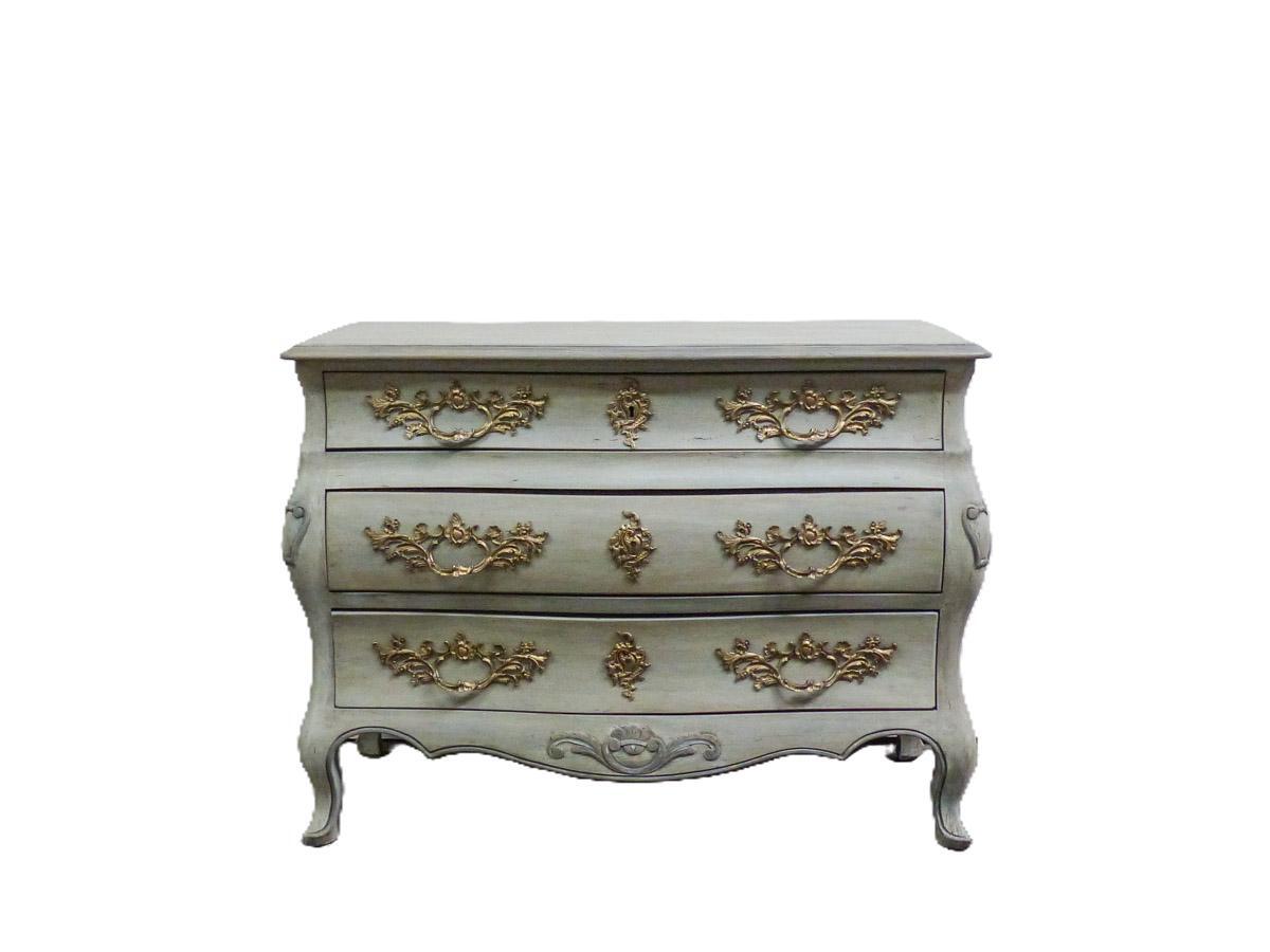 REQUEST MORE INFORMATIONA Three Dovetailed Drawers Painted Wood Chest with Carved Details.